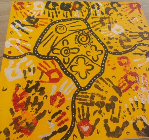 Last week, I visited a mural workshop by Tristan Harris, who is a Noongar man from the Bibbulmann clan in Western Australia, known for his work as a cultural educator, performer, and advocate for Indigenous heritage. The different colours on the pictures represent the different people who converge to form paths that surround their communities. After Tristan’s introduction, I learned that there are many languages spoken by the Aboriginal people in Australia. But also many languages are being lost.